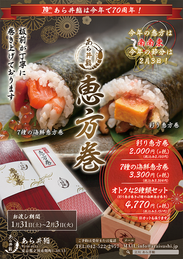 巻物メニューよりお好みの巻物を盛り込みます(2本より) - 時価